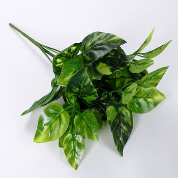 بيع بالجملة نباتات بلاستيكية خضراء صغيرة بوعاء أكسسوارات فندق ديكور منزلي باقة أوراق خضراء صناعية