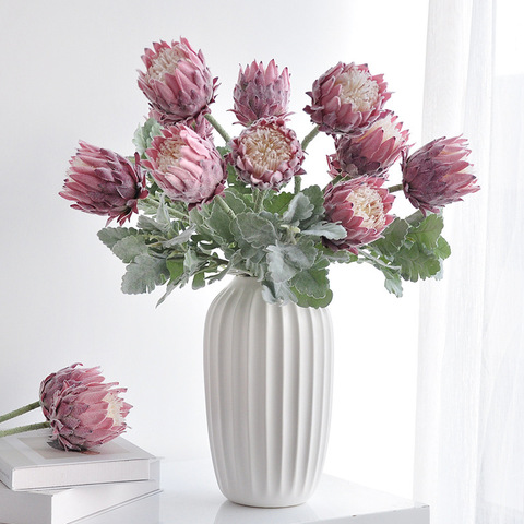 Materiale floccante di alta qualità re artificiale Protea Real-Touch Home Office fotografia decorazione bianco re Protea Cynaroides