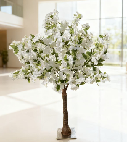 Árbol Grande de Flor de Cerezo Artificial de Seda, Flor de Sakura Japonés Falso Grande en Color Blanco para Decoración de Bodas en Interiores y Exteriores