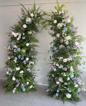 L ขายร้อนผสมสีฟ้าสีชมพูสีขาวปลอมครึ่งซุ้มดอกไม้แถวงานแต่งงานพื้นหลังสำหรับจัดงานแต่งงาน